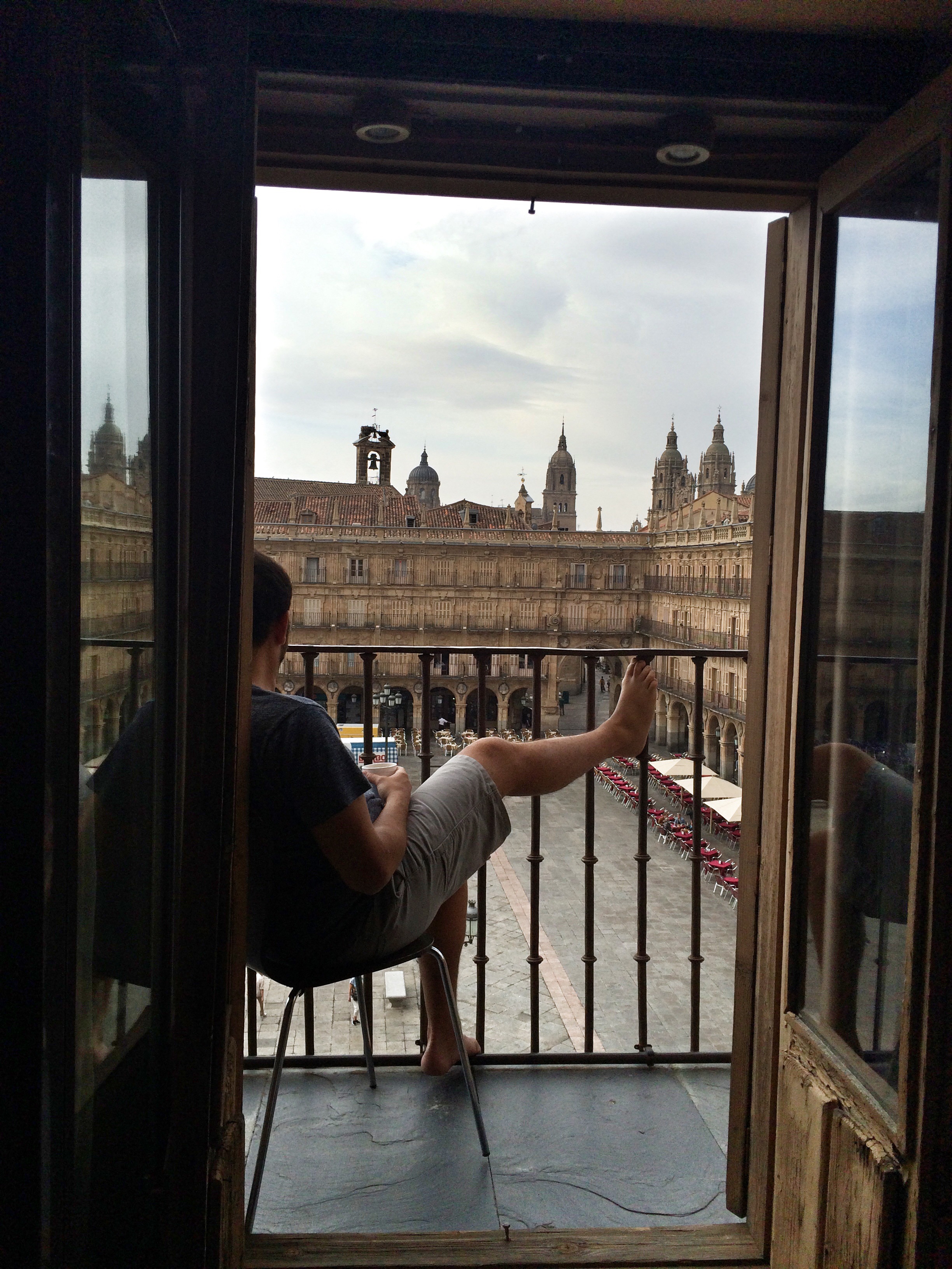 It was sad to know we only had one night left in Europe; it felt like we had been gone so long and yet our fantasy was finally coming to an end. But, we desperately missed our puppies, and couldn’t wait to get back to them. The next morning we said goodbye to Salamanca, but first I captured the most epic “Matt Sits in European Windows” photo yet: